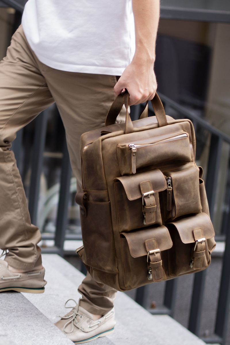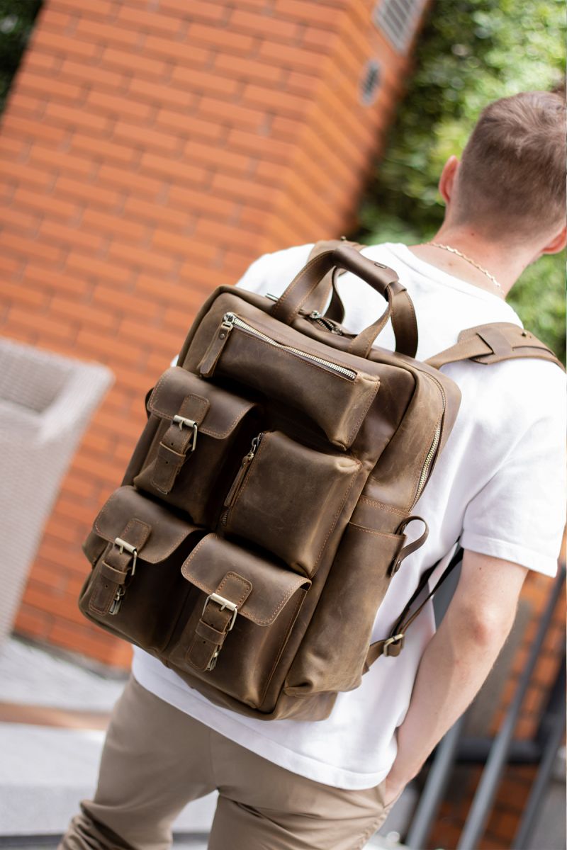 Місткий та стильний рюкзак JACOB із коричневої (віскі) шкіри – наша топова модель серед міських рюкзаків. Прямокутна форма та сім зовнішніх кишень забезпечують максимальну місткість. Наш рюкзак підходить як для офісу так і для подорожей, при цьому він досить крутий і здатний додати харизмотичність та ноту авантюри вашому характеру.