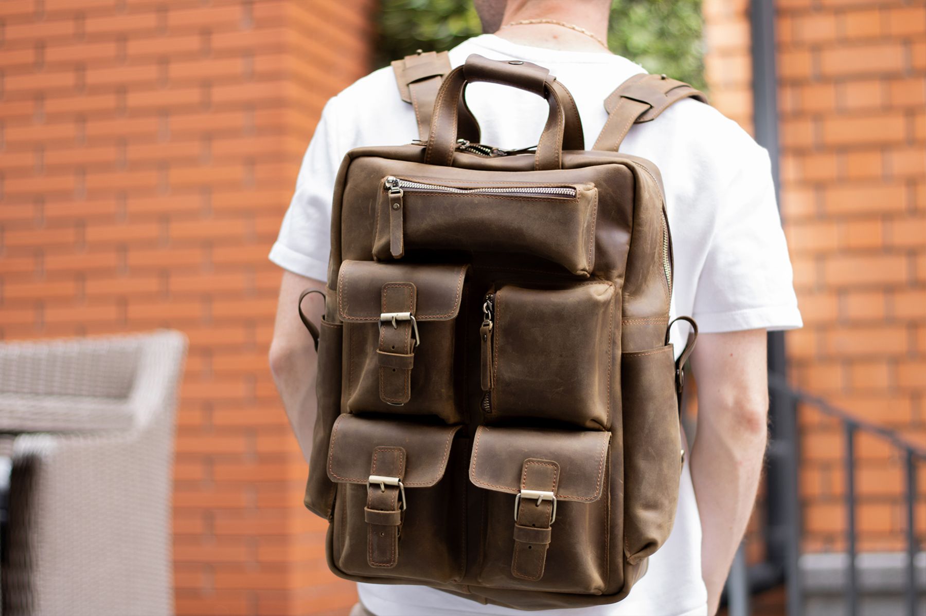 Місткий та стильний рюкзак JACOB із коричневої (віскі) шкіри – наша топова модель серед міських рюкзаків. Прямокутна форма та сім зовнішніх кишень забезпечують максимальну місткість. Наш рюкзак підходить як для офісу так і для подорожей, при цьому він досить крутий і здатний додати харизмотичність та ноту авантюри вашому характеру.